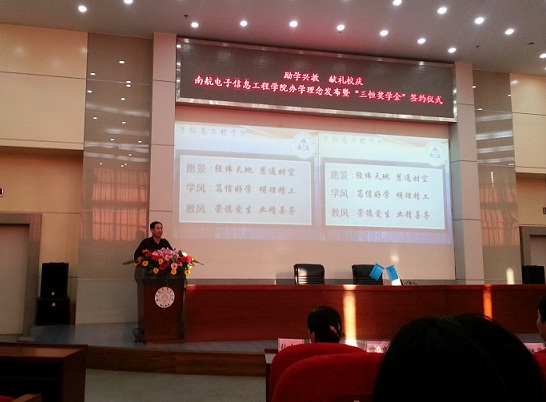 院党委书记冯绍红发表了热情洋溢的致辞,颁布了极速炸金花 的办学理念,即愿景:经纬天地,慧通时空;学风:笃信好学,明理精工,教风:崇德爱生,业精善导;培养目标:高素质公民和电子信息领域的开拓者。极速炸金花 党委副书记季海群解读了极速炸金花 的办学理念。退休教师代表戴明帧教授作了极速炸金花 文化内涵方面的发言,用自己的亲生经历讲述了极速炸金花 在不同历史时期取得良好发展的关键原因在于先进的办学理念。极速炸金花 副院长赵永久教授对仪式进行了总结。江苏三恒科技集团有限公司与极速炸金花 举行了“三恒科创俱乐部”揭牌仪式和“三恒奖学金”签约仪式。