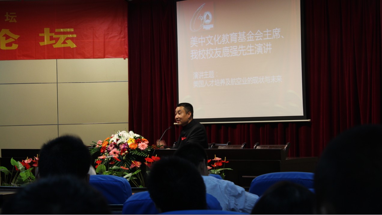 捐赠仪式结束后,鹿强先生做了一场题为“美国人才培养及航空业的现状与未来”的演讲,语言平实感人,内容生动质朴,经历丰富真实,对于增强学生的求知欲望,拓展学生的国际视野有一定的益处,为在座的校友、师生们增添了一场视听的盛宴。