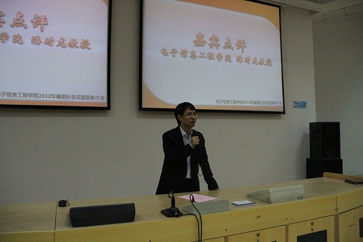 展示结束后,潘时龙教授对实践成果进行了点评。他指出,社会实践是大学生磨练意志、锤炼品格、学以致用的有效途径,并结合自己在大学时期的实践经历,向同学们提出“用心做好实践”的希望和要求。接下来,团委书记张晓燕宣读了表彰决定。最后,潘时龙教授、芮康康老师、张晓燕老师分别为获得校级和院级奖励的同学进行了颁奖。
