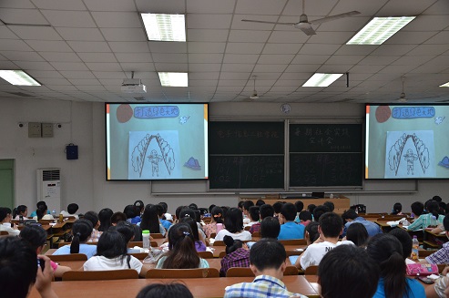 团队展示结束后,院团委副书记刘摇平为同学们详细地介绍了暑期社会实践具体实施细则,强调团队要落实主题、地点,积极利用身边的资源,明确队长的责任,注意宣传员的任命,以及提交申请表的注意事项。最后,张晓燕老师强调了暑期社会实践的重要性,提出要牢记三个意义:受教育、长才干、做贡献,用心做每一件事。并指出社会实践的侧重点:七大主题,五大专项、长期立项、社会调研、创业实践等。最后是一段同学们自行制作的社会实践宣传视频,富有创意的展现形式让在场的每一位同学都对今年的社会实践充满了信心。