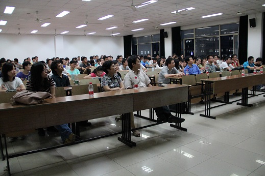 宣讲会由系主任何小祥、雷磊主持。首先两位系主任分别对各系情况作了全面介绍,包括师资队伍、学科方向、研究生培养质量、2012年研究生就业情况、2013年研究生招生情况等。随后,各学科方向带头人、教授代表对各课题组的研究概况和研究生培养等做了简要介绍,接下来进入师生互动、分组讨论环节,同学们围在自己感兴趣的专业方向的老师身旁,踊跃提问,向导师们咨询有关于保研、考研过程中的各种疑问。导师们针对不同问题,认真详细的解答了同学们的各种疑惑,并给予了同学们最为中肯的意见和建议。最后周建江院长以“人生能有几回搏”激励在场的准毕业生们,鼓励同学们努力学习,把握机会,在考研的战场上取得好成绩。