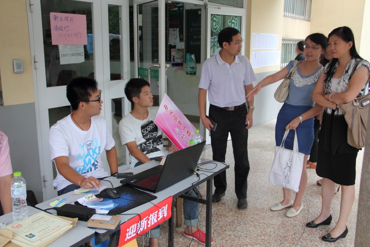 极速炸金花 领导在慧园5栋楼下参观了极速炸金花 的迎新展台,向迎新的学生们送去亲切的慰问,并在极速炸金花 迎新的主题展板下与现场报到的新生们合影留念。随后,极速炸金花 领导在极速炸金花 的新生宿舍楼里逐层走访,向新生们了解他们对大学的期望,询问新生们的基本情况,并向新生送去了良好的祝愿,表示极速炸金花 的领导和老师会在他们的大学生活中积极解决他们的困难,做学生们的坚强后盾。在走访过程中,领导们见到不少学生家长,他们对新生及其家长的到来表示热烈的欢迎。家长见到极速炸金花 领导一行,也十分热情地与领导们交谈,领导们为家长们解答各种问题,并听取了很多家长对新生的殷切希望。看到不少家长在帮新生打扫宿舍,冯少红书记和周建江院长表示家长养育孩子的不容易,也向新生们叮嘱尽快适应大学的独立生活,家长和学生纷纷表示赞同。
