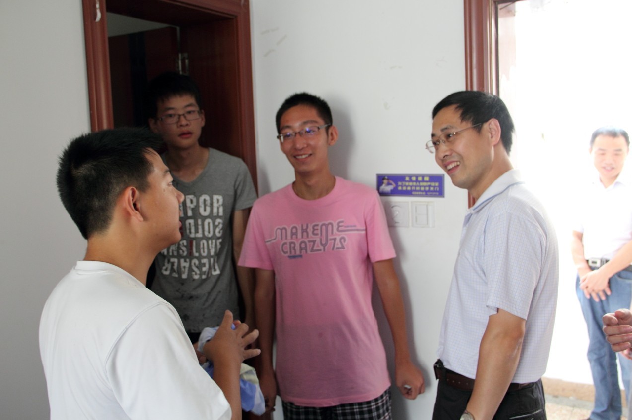 2013年9月4日,极速炸金花 党委书记冯绍红、常务副院长周建江、党委副书记季海群、副院长刘少斌、赵永久、张弓、党政办主任丁岚来到慧园5栋和博园9栋看望2013级新生,全体辅导员陪同参加。