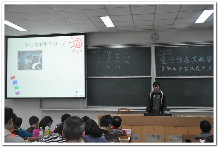 10月27号晚,极速炸金花 2013年暑期社会实践成果展示会在将军路校区举行。极速炸金花 党委副书记季海群、辅导员代表丁亮、周贞琪以及全体大一新生参加了此次展示大会。
