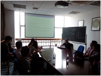 会上,王海燕教授回顾复杂网络的三种主要分析方法,重点阐述了Partial Defferential Equatations (PDE)方法在社交网络信息传播方面的数学模型及应用,深入讲述了如何从网络上抓取实测数据。最后,王海燕教授用计算机现场演示了如何利用PDE所建的数学模型拟合实际的信息传播模型,最后进行信息传播的预测。