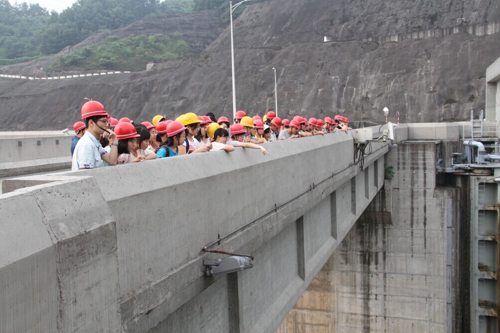 参观实习环节共分三个部分。在葛洲坝电厂的参观中,高级工程师们带学生们进入厂区内部,实地见证了每一个重要机械的工作流程。同学们近距离接触着那些正在运转的机器,工程师同时解释工作原理,带着大家一会深入地下厂房,一会上到坝面,身边就是隆隆作响高速运转的机器。虽然烈日炎炎,但丝毫不减同学们的学习热情。工程师们一面介绍着眼前的机器,一面向同学们提问题,帮助大家运用已经学过的知识理解电厂机械的工作原理。同学们对这样的学习方式兴趣十分高,不时向工程师们提出问题,旁听的同学们也进行讨论,