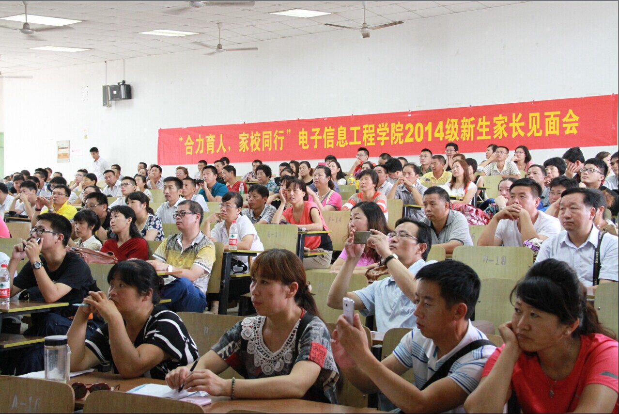 9月2日上午10点,极速炸金花 在将军路校区4101教室召开2014级新生家长会。极速炸金花 常务副院长周建江教授、副书记季海群、副院长赵永久教授、团委书记张晓燕、新生辅导员冷阳和近三百位学生家长参加了会议。