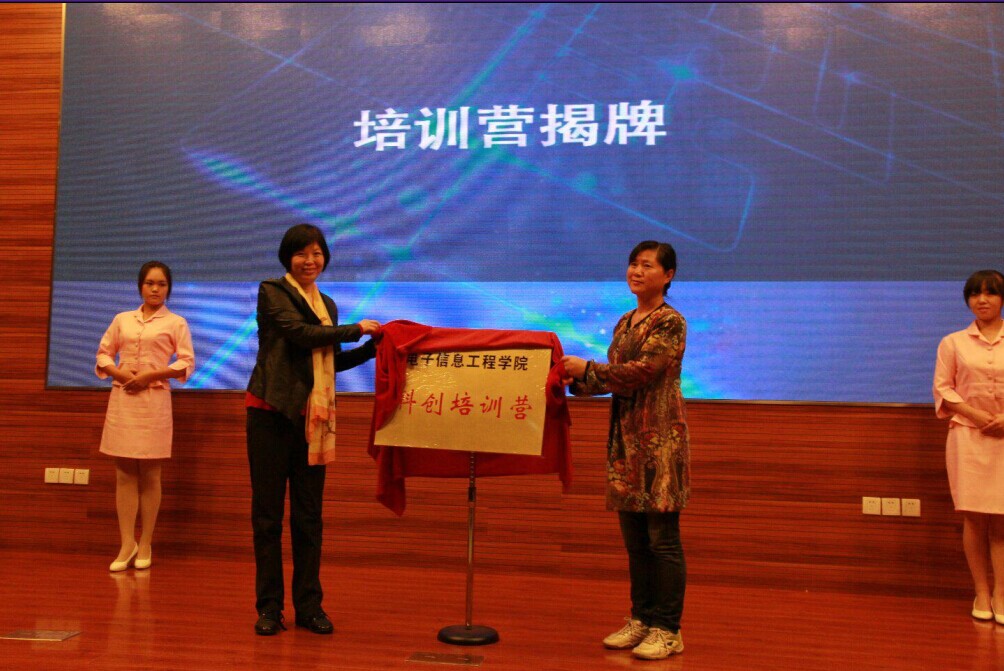 接着冯绍红书记和葛玉兰老师为培训营揭牌,徐川老师向培训营导师团颁发聘书,张跃老师向培训营团队办法聘书。最后,“群星”奖得主刘振宇强调了“勤于学习,勇于创新”的精神与树立团队意识的重要性,鼓励同学燃起兴趣的火苗,全身心投入到实践研讨中去。仪式在热烈的气氛中结束。