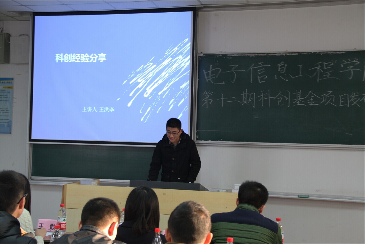 科创基金项目全部介绍完毕后,具有丰富经验的王洪李学长向同学们讲述了他在科创道路上的心路历程,在鼓舞了同学们的斗志的同时,也为大家指出了如何开启科创之路的法宝。