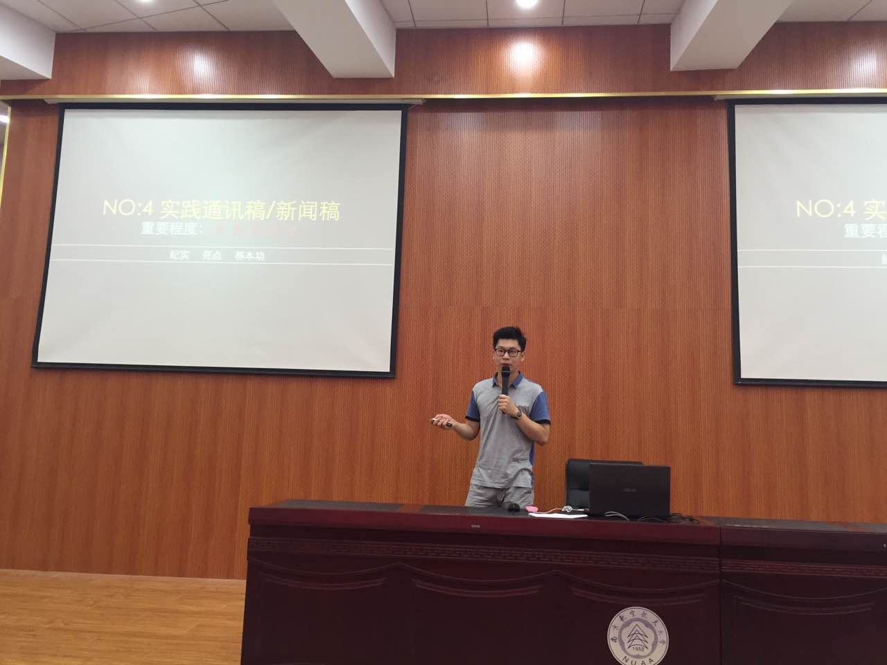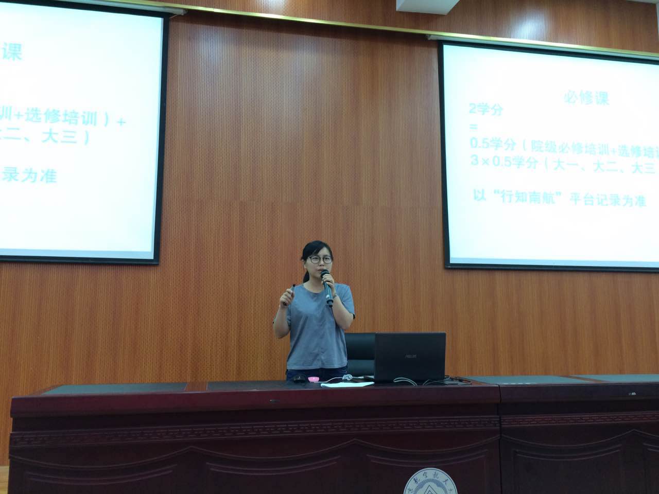 ”大学生暑期实践管理平台的相关功能。必修第二讲,辅导员冷阳就实践成果设计及注意事项与同学们进行探讨。他的授课围绕摄影图片、实践日志、新闻稿以及实践报告等材料的制作和整理,逐一给同学们传授方法和提出要求。最后,他就实践申报的各类奖项进行了说明。