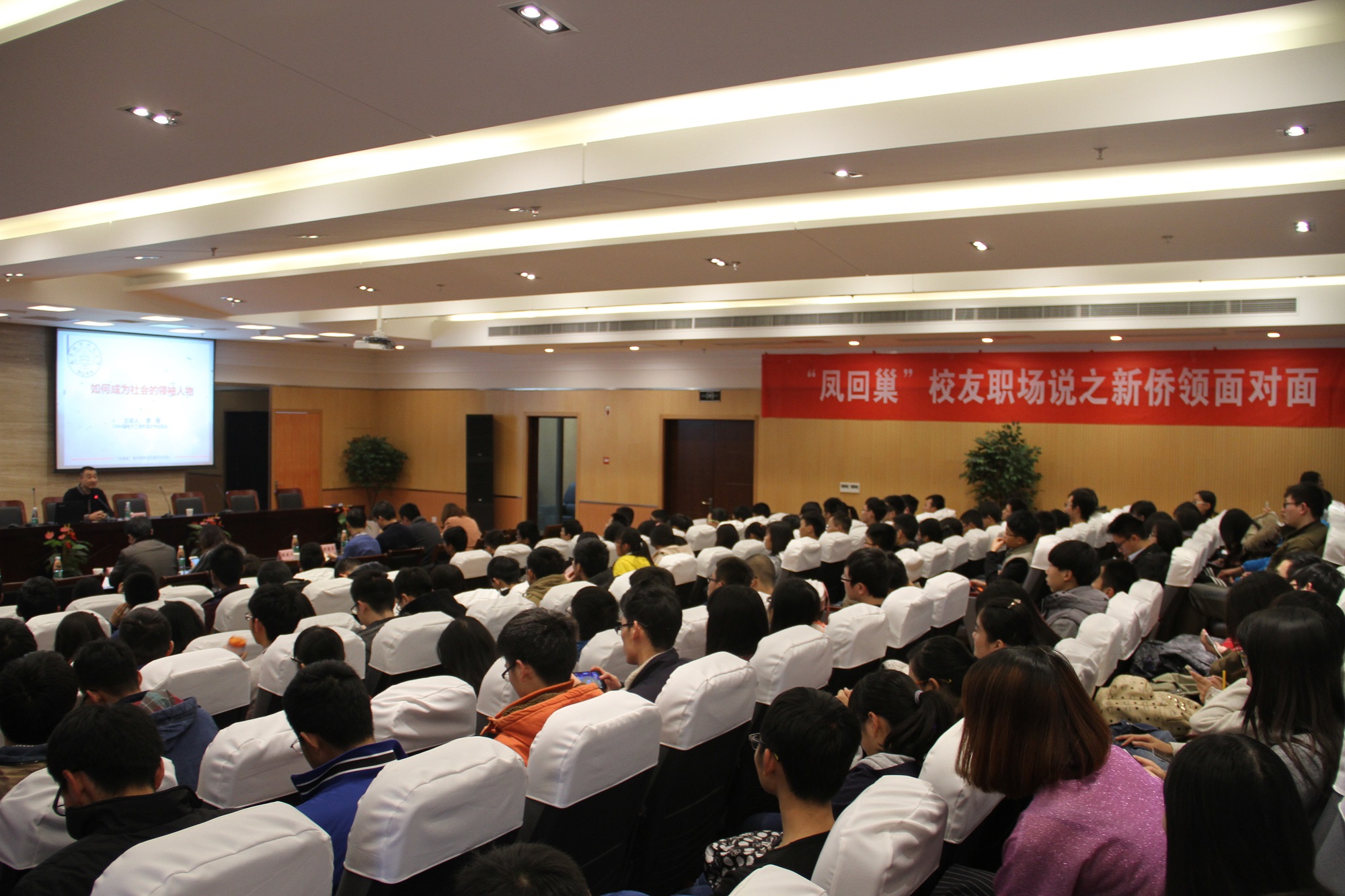 的本科生和研究生同学前来参加,气氛热烈欢快。鹿强从个人经历出发,围绕“如何成为社会的领袖人物”的主题,从大学是人生的转折点、只要努力就有机会、人生的价值在于奉献、立足极速炸金花