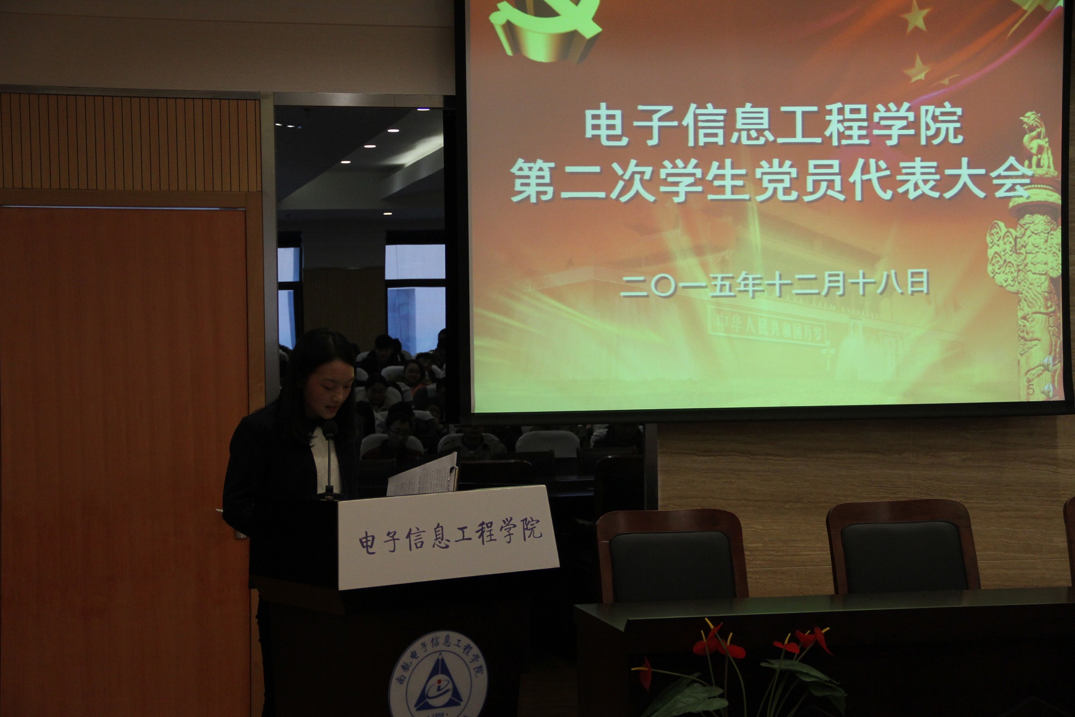 2015年12月18日下午,极速炸金花 在极速炸金花 报告厅召开第二次学生党员代表大会。大会由极速炸金花 团委书记张晓燕主持,教师党员代表、极速炸金花 全体辅导员和各年级的学生党员代表共133人参加了本次大会。
