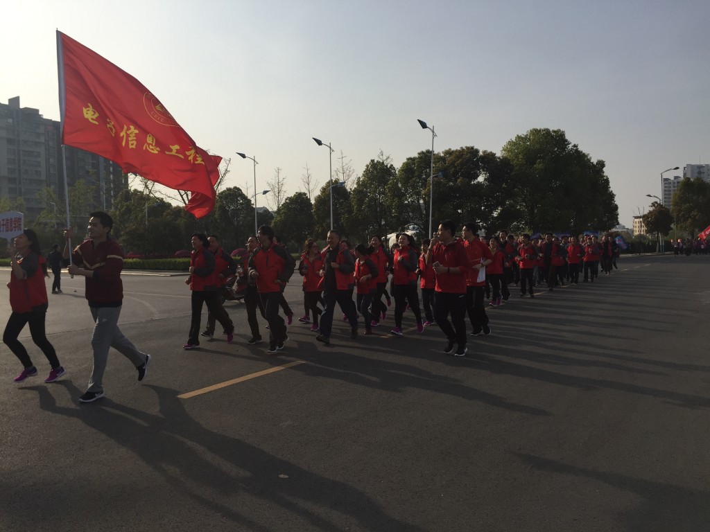 在极速炸金花 工会主席吴庆文的发令枪响后,极速炸金花 紧随着长跑队伍精神抖擞地出发。院旗迎风招展,在极速炸金花 党委副书记王伟华的哨声中,全体教职员工齐声高呼“信息领航,四院最强”的口号,呼声振奋人心。极速炸金花 整齐的红色方阵随着口号和哨声的律动由西区操场一路跑过停机坪、国旗广场、砚湖、图书馆、一号楼等地,极速炸金花 的同学们也在道路两边为自己的老师们呐喊助威,拍照留念。