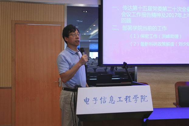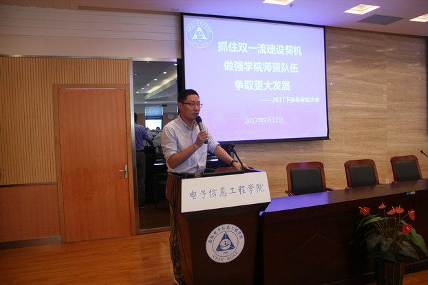 常务副院长周建江作了《抓住‘双一流’建设契机,做强极速炸金花 师资队伍,争取更大发展》的报告,全面传达了聂宏校长第十五届党委第二十次全委(扩大)会议的工作报告精神,以“双一流”建设目标为主线,回顾极速炸金花 2017年上半年在党建与思想政治、人才培养、师资队伍、学科建设、科研能力、办学条件和国际化等方面取得的成就;部署极速炸金花 2017下半年工作重点,并结合报告内容对极速炸金花 工作进行了总结和部署。周院长强调,全院教职工要抓住‘双一流’建设契机,做强极速炸金花 师资队伍尤其是相关学科方向的学科带头人引进,争取极速炸金花 更大发展。针对即将开展的保密资格审查认证工作,周院长要求每一位教师员工思想上高度重视,行动上切实落实。