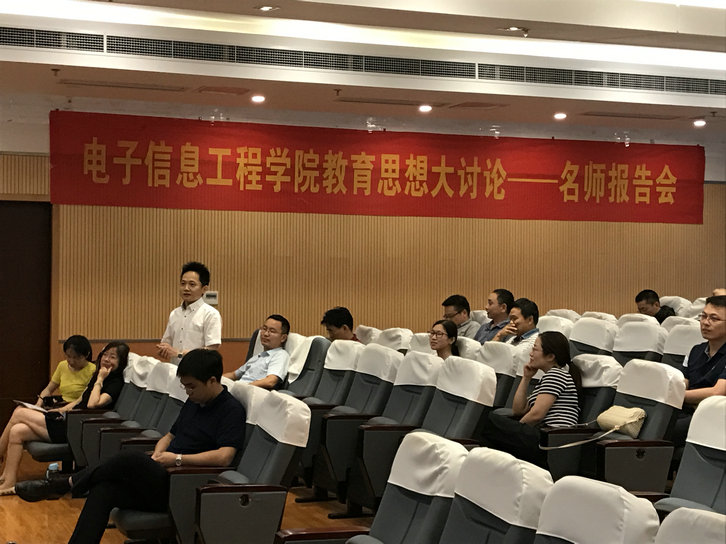 报告还分析了当下的教育新形势,进一步解读了“新工科”的概念。最后,王成华与参会教师分别就改进教学方式、学分设置、学生实践创新等师生们关心的问题进行详细地解答和交流。