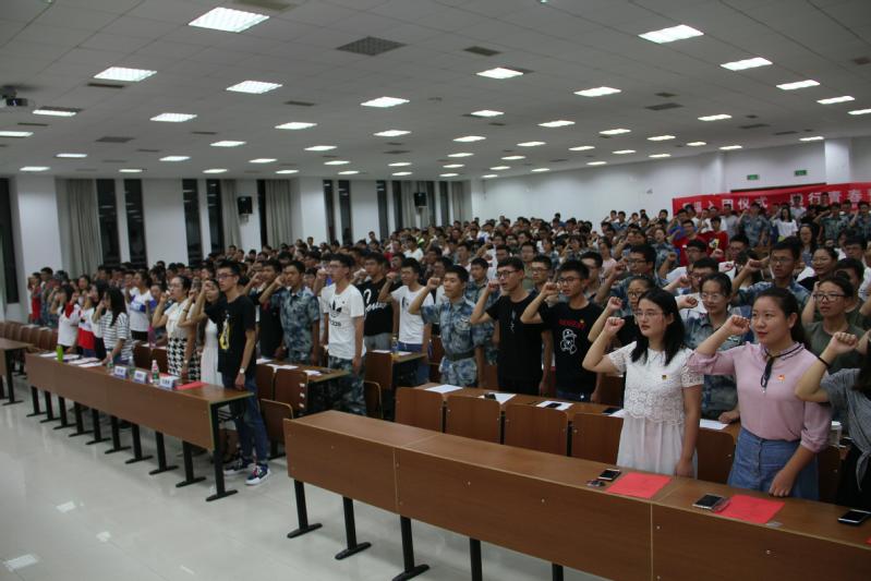 接着,院团委常务副书记刘奕同学带领大家宣誓,在入团誓词的字字句句里回忆入团那时激动人心的时刻。