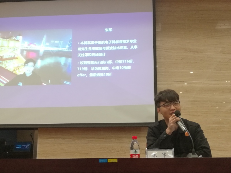首先是进入第十研究所的朱军师兄为我们主要讲解他的关于面试研究所的经历,并通过自己的简历格式教大家如何写出一份让面试官满意的简历。