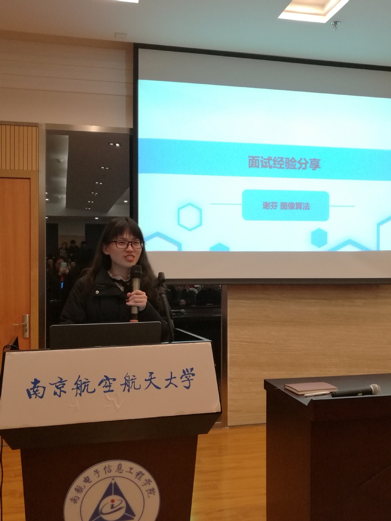 接着是进入成飞的吴晓华学姐为我们讲解面试的主要流程和了解就业信息的途径。以及告诉我们在面试前需要掌握的技能有哪些。