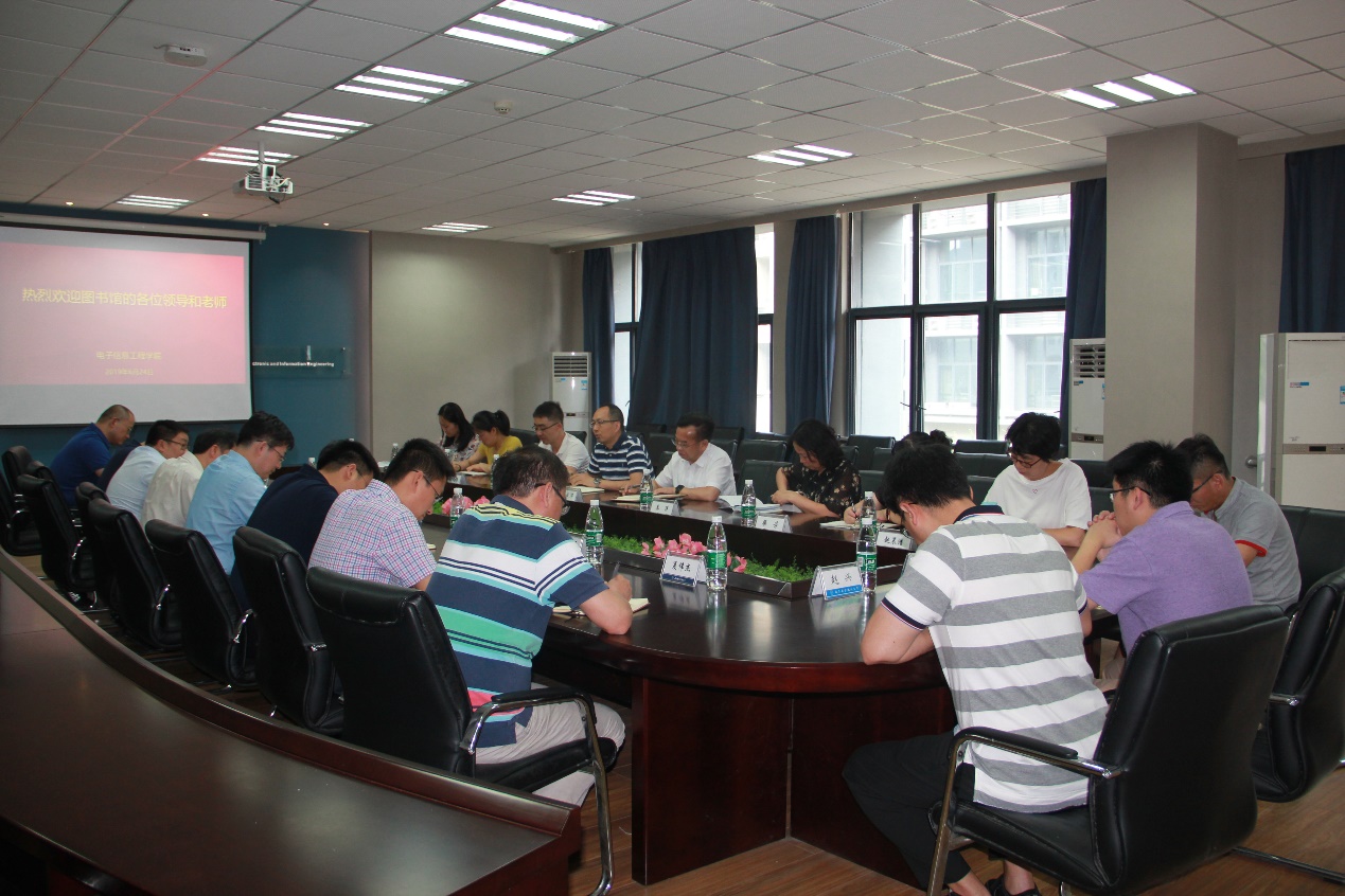 6月24日上午,极速炸金花 图书馆馆长王成华一行莅临极速炸金花 调研指导工作,图书馆副馆长单冠贤、工信智库评价中心副主任秦萍、副研究馆员李小涛及资源建设部、服务部、学科馆员负责同志等参加了调研。极速炸金花 党委书记聂东林、常务副院长吴启晖和全体领导班子成员、系主任及教师代表参加调研座谈。