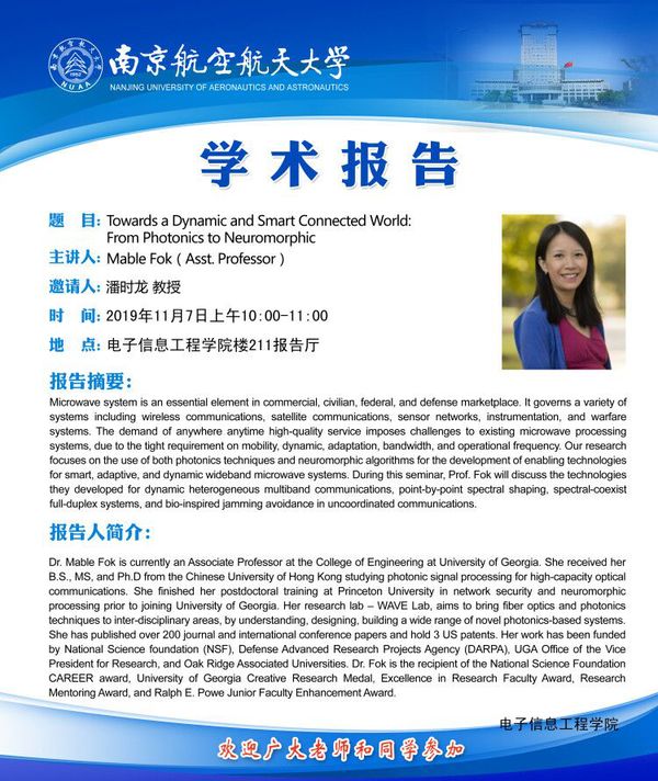 学术报告会——Towards a Dynamic and Smart Connected World: From Photonics to Neuromorphic