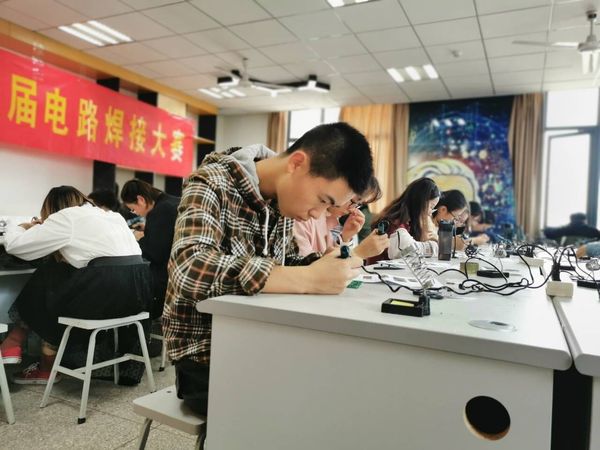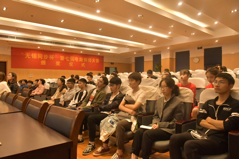 11月2日——3日,电子信息工程极速炸金花 在极速炸金花 实验楼315室举办了第七届电路焊接大赛。本次大赛是由无锡市同步电子科技有限公司赞助,参赛选手来自13个极速炸金花 ,共550名同学参加。大赛颁奖仪式于11月3日晚7点在将军路校区电子信息工程极速炸金花 院楼515报告厅隆重举行。出席了本次颁奖仪式的有无锡同步公司人力资源部经理刘进军先生、手工焊及返修组主管付建先生、人力资源专员何丽丽女士、王胜男女士,及电子信息工程极速炸金花 院团委书记徐艳惠老师、2019级辅导员李姝萱老师和比赛获奖选手们。