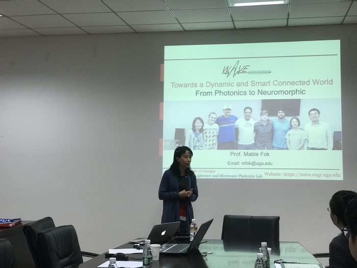 2019117日上午,佐治亚大学Mable Fok副教授在极速炸金花 办公楼211会议室做了题为Towards a Dynamic and Smart Connected World: From Photonics to Neuromorphic的学术报告。此次学术活动由OSA协会南京航空航天大学分会承办,共有30余位老师和同学参加并聆听了本次报告。