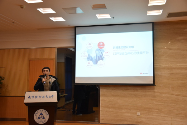 最后,企业代表华为海思AI生态技术总监符秋杰进行发言,对获邀参加此次活动表示感谢,并对包括Mind StudioAI全栈开发平台、昇腾开发者社区、自助技术等在内的AI生态项目进行具体介绍。