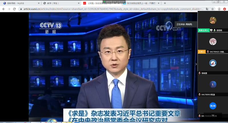新冠肺炎疫情发生后,在以习近平同志为核心的党中央坚强领导下,举国上下同时间赛跑、与病魔较量,党员干部冲锋在前,与人民群众心手相连,共渡难关。在这个特殊时期,为扎实做好新形势下党员的教育管理工作,3月29日下午,电子信息工程极速炸金花 本科生第一党支部“疫”路同心线上支部大会顺利举行,党支部书记周高雨及全体支部成员通过视频线上参会。