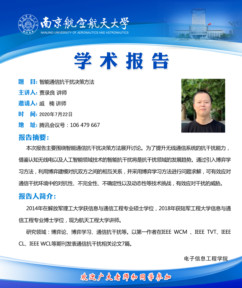 学术报告会——智能通信抗干扰决策方法