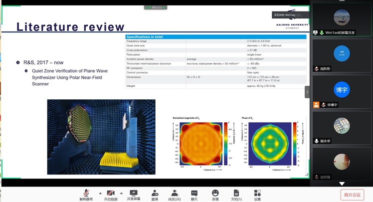 范教授首先介绍了奥尔堡大学的电子系统的整体研究情况,着重介绍了天线、传播和毫米波系统(APMS)研究方向。随后重点讲解了用于5G无线电空口测试的平面波合成器(PWG)设计。范教授对PWG的研究背景、研究现状进行了综述性介绍,然后对PWG设计过程中的多种核心优化算法以及优缺点进行了总结,最后提出了PWG目前存在的一些挑战,并对未来研究的重点进行了展望。