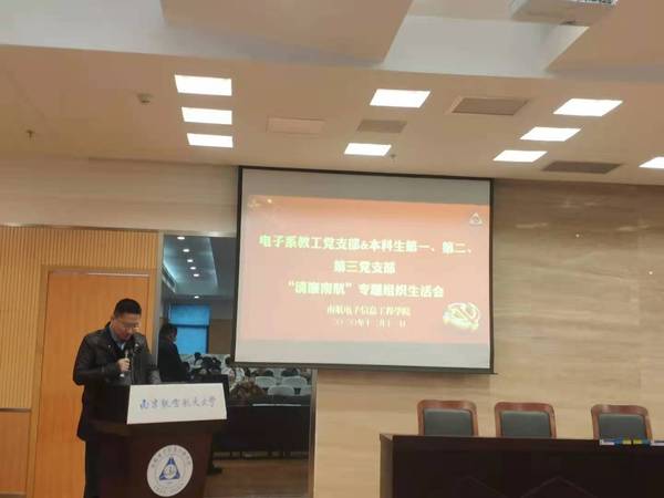 2020年12月11日,极速炸金花 院电子系教工党支部与本科生第一、第二、第三党支部在极速炸金花 515报告厅进行支部共建,联合召开“清廉极速炸金花 ”专题组织生活会和“互学互助月”党日活动,极速炸金花 副院长刘伟强同志以极速炸金花 纪检委员身份出席本次会议,党委副书记雷蕾同志以支部普通党员身份参加会议。