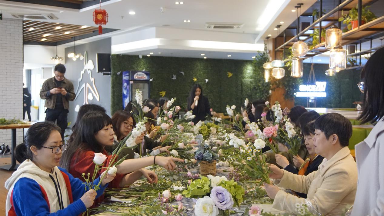 为切实关心极速炸金花 女教工身心健康,丰富文化生活,陶冶艺术情操。3月15日下午,极速炸金花 工会组织开展“关爱女教工”主题活动,邀请专业花艺师为极速炸金花 女教工讲授花艺知识,指导花束制作。极速炸金花 党委书记聂东林、党委副书记雷蕾、院工会主席黎宁及三十余名极速炸金花 教师共同参与了此次活动,黎宁主持了此次活动。