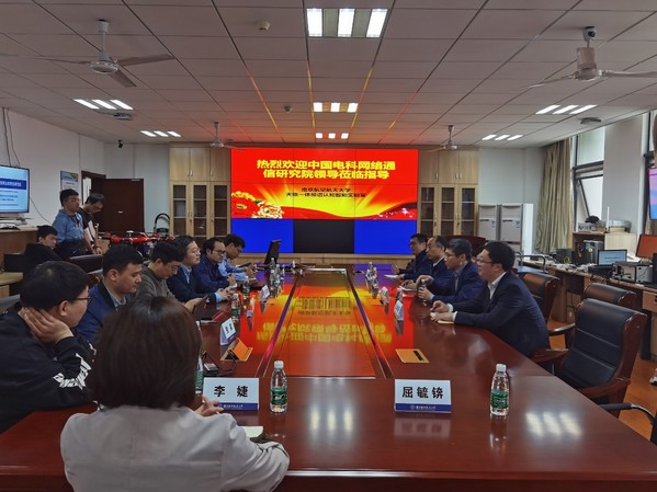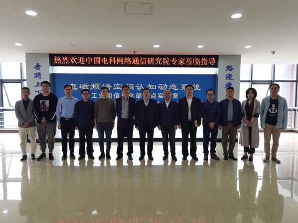 2021年4月24日下午,中国电科网络通信研究院姚勇副院长、产业部王向前副主任、研究院马万权副总工以及彭会湘研究员一行4人莅临极速炸金花 天地一体频谱认知智能实验室交流指导。校长助理、极速炸金花 常务副院长、实验室主任吴启晖教授携实验室副主任张小飞教授、周福辉教授、王威研究员、贺荣高工、孙萌副教授、李婕副研究员、刘天星老师、屈毓锛老师等一同参与交流。