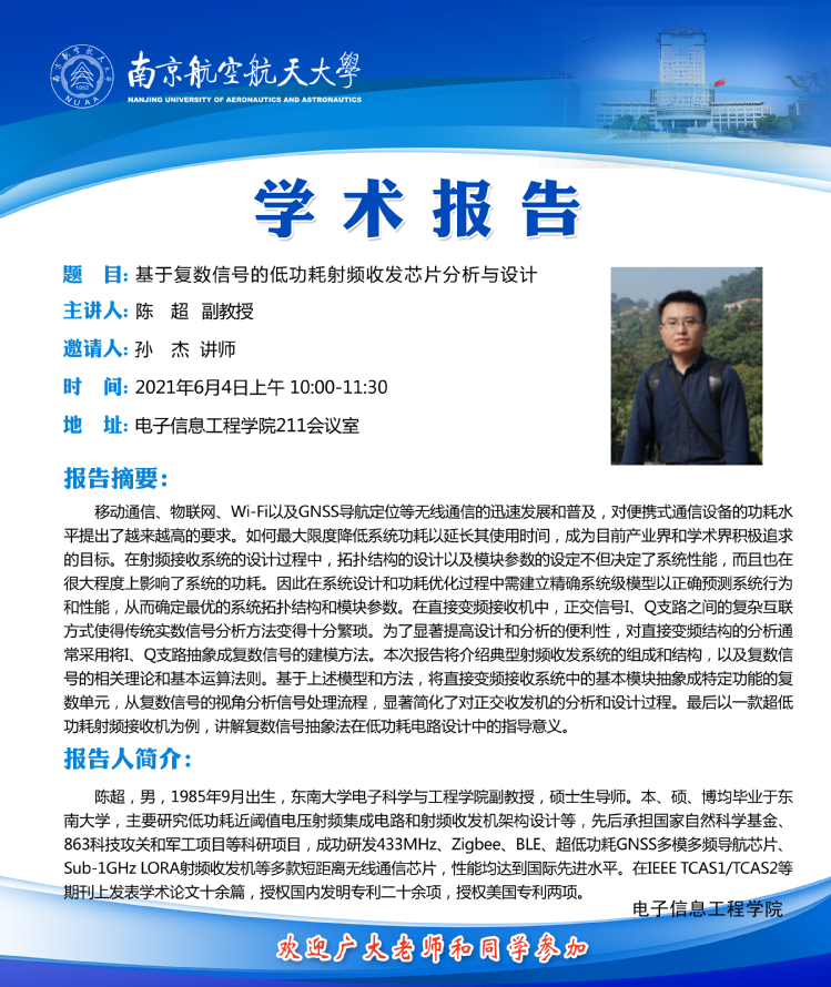 学术报告——基于复数信号的低功耗射频收发芯片分析与设计