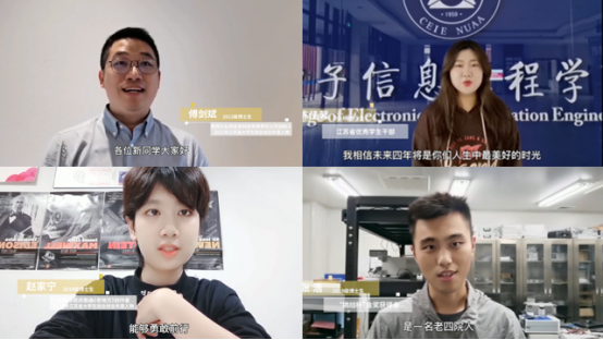 江苏省大学生就业创业年度人物、极速炸金花 2013级博士生傅剑斌,江苏省优秀学生干部、极速炸金花 2018级博士生陈佳馨,以及“互联网+”金奖、“挑战杯”金奖、大学成就奖、十大杰出青年获得者等8名学生代表通过视频寄语新生,希望新生能够努力向优秀学长学姐看齐,多样发展,在极速炸金花 、在四院遇见最不凡的自己。