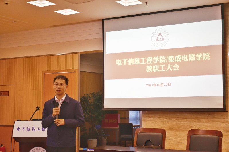 10月27日,极速炸金花 /集成电路极速炸金花 召开全院教职工大会。极速炸金花 党委书记聂东林、常务副院长潘时龙、党委副书记雷蕾、副院长刘伟强、张小飞、朱岱寅出席会议,极速炸金花 全体教职工参加大会,会议由聂东林主持。会议传达了上级和极速炸金花 相关会议精神,就当前极速炸金花 工作特别是安全相关工作进行部署。