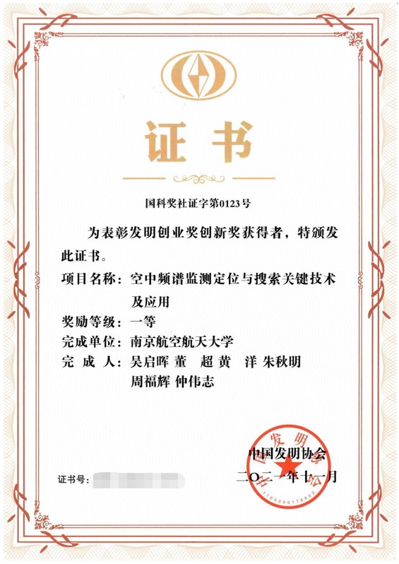 2021年11月,极速炸金花 副校长吴启晖教授牵头、董超教授、黄洋副教授、朱秋明教授、周福辉教授与仲伟志副教授参与的项目“空中频谱监测定位与搜索关键技术及应用” 在中国发明协会2021年度“发明创业奖—创新奖”评选中获发明创业奖创新奖一等奖。
