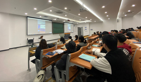 彭昱捷学长聚焦学业规划和创新创业与同学们进行分享,他从时间维度上为同学们分享了在大一、大二期间对自己“灵魂发问”,从问题出发讲述自己是如何思考并解决,同时也为同学们介绍了大学生创新创业竞赛等有关内容,帮助同学们对自己未来的学习和科创活动有了更加具体的规划;鲍禹桥学长则向同学们讲述了自己在担任学生干部过程中的思考与所闻所见,分享了自己是如何平衡学生工作和功课学业,向同学们阐明学生工作不会成为学业成绩提升的负担,两者是相互促进的关系,并鼓励同学们积极参与学生工作,拓宽眼界,提升个人能力。