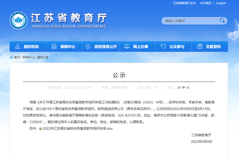 近日,江苏省教育厅公布了江苏高校优秀基层教学组织评选结果,最终认定100个高校省级优秀基层教学组织,极速炸金花 信息工程专业建设教学团队成功入选,极速炸金花 新增一个省级教学团队。