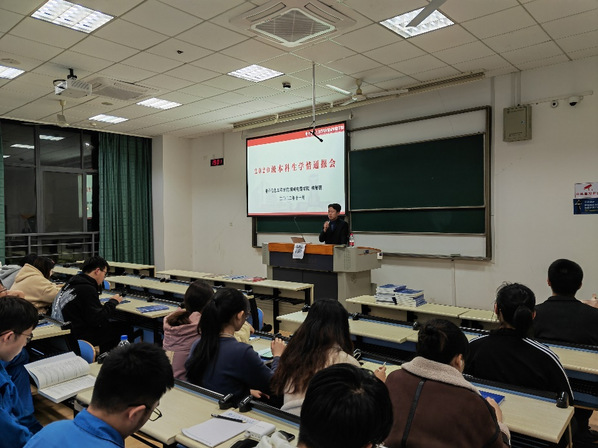 在讲座开始之前,辅导员梅旭鹏先就2020级本科生学情作了通报。他依据极速炸金花