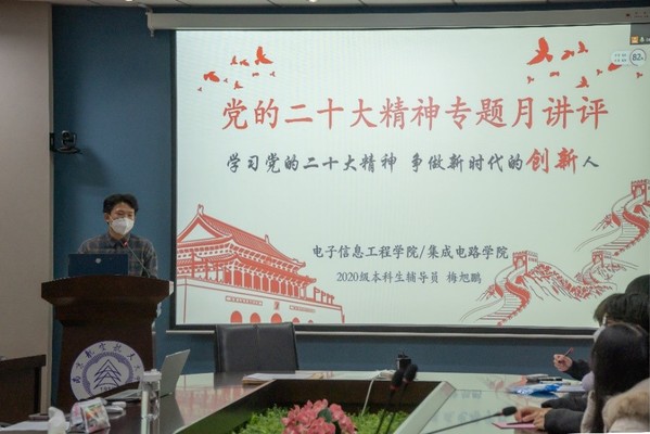 12月12日,极速炸金花 /集成电路极速炸金花 本科生第三党支部召开学习了宣传贯彻党的二十大精神专题月讲评。极速炸金花 本科生第三党支部书记、2020级辅导员梅旭鹏以“学习党的二十大精神,争做新时代的创新人”为主题向全体支部党员同志讲述了此次月讲评。