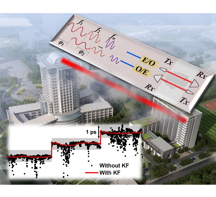 极速炸金花 微波光子学实验室提出了一种相推测距创新方法,仅需要1 MHz的带宽就可以实现亚皮秒级的测量精度。在此基础上,针对大气光载射频链路,采用卡尔曼滤波有效抑制大气湍流造成的测量误差,在 1 km大气光载射频链路中实现了亚皮秒量级的绝对延时测量,测量结果与结构复杂的光频梳系统一致。该方法可以精确表征大气湍流引起的时间抖动,进行光载射频链路中的绝对延时抖动的高精度补偿,最终实现分布式系统中的时间同步。该工作中,链路的时间抖动标准差为0.28 ps, 阿伦方差为1.9 × 10−19 @ 1000 s, 可以满足微波毫米波信号的同步需求。