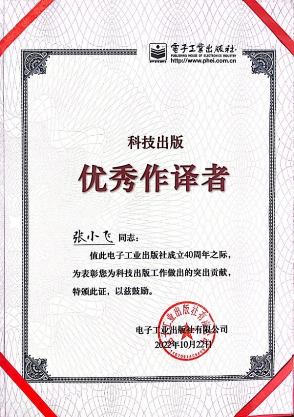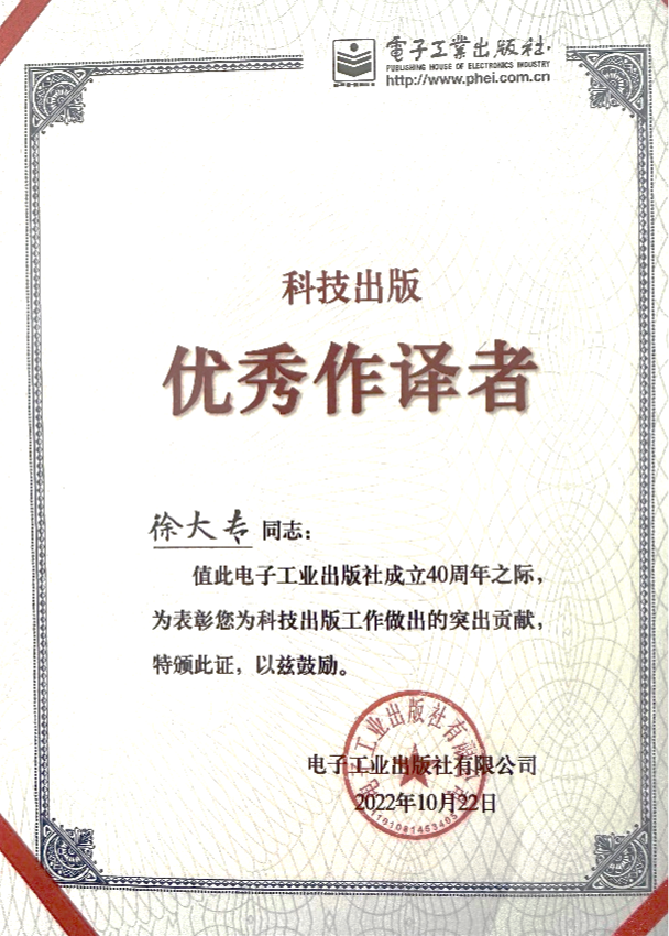 近日,在电子工业出版社成立40周年庆祝活动中,极速炸金花 /集成电路极速炸金花 徐大专教授、张小飞教授荣获电子工业出版社“科技出版优秀作译者”称号。