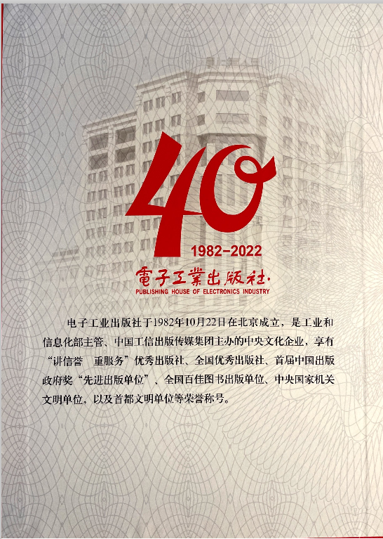 电子工业出版社是工业和信息化部主管、中国工信出版传媒集团主办的中央文化企业,是中共中央宣传部和国家新闻出版总署授予的“全国优秀出版社”,在新闻出版总署组织的社、店互评活动中,连年被评为“重服务、讲信誉”的优秀出版社,获得了“全国版权贸易先进单位”“中央国家机关文明单位”等荣誉。
