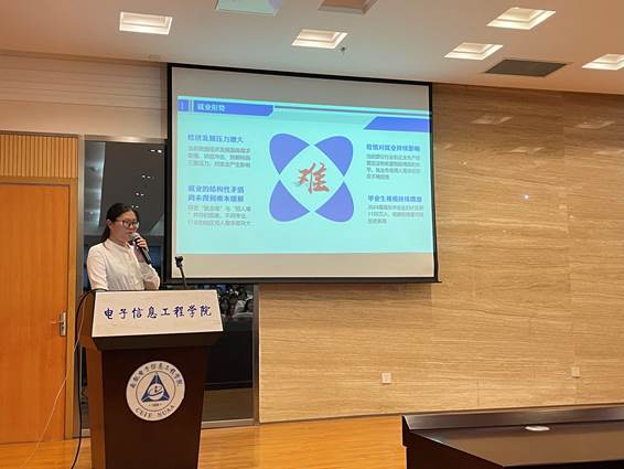 辅导员刘惠欣以当前就业现状引入话题,结合行业趋势、地域选择等多视角的全面分析,帮助学生准确把握当前就业形势。通过对极速炸金花 近五年就业去向数据进行分析,她鼓励同学们树立正确的就业观,充分发挥自身优势和才能,积极应聘多种类型岗位,早就业就好业。同时也希望同学们在职业选择中将个人发展与国家需求结合,争做担当民族复兴大任的时代新人。