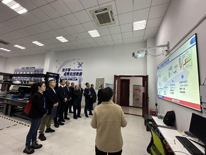 首先,余斌一行来到极速炸金花 国家级重点实验室-天元实验室参观。极速炸金花 李思敏老师介绍了天元实验室的整体情况,展示了光矢量分析系列仪表、光生微波源、微波光子实时频谱测量仪、光载GNSS一机多天线系统、新型光子器件与芯片等成果。