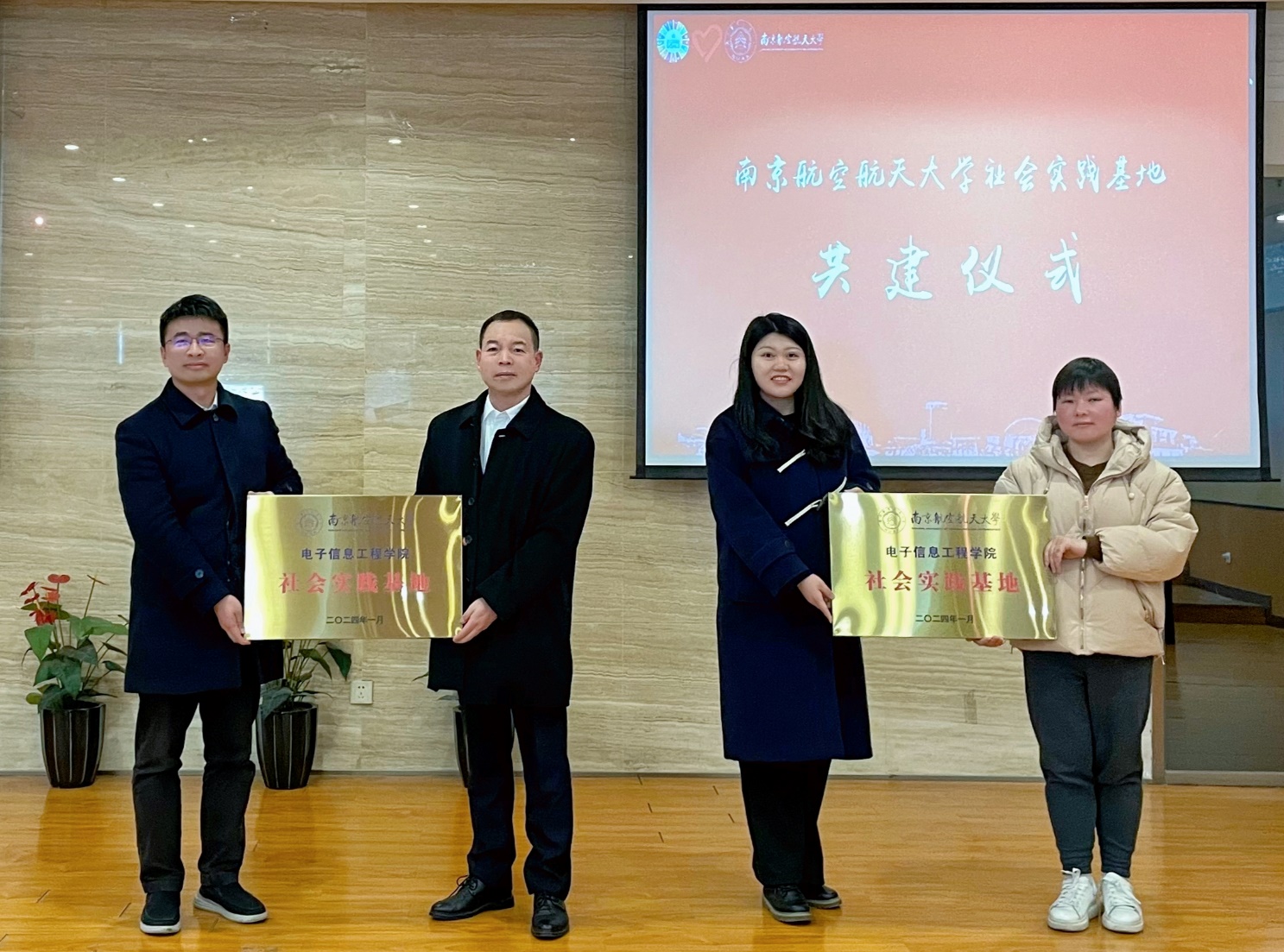 活动中,南航校友会电子信息行业分会副会长沈耀伟、南京科技馆副馆长孙强、南航电子信息工程极速炸金花 团委书记席维唯、南京南站区域党建联盟360党委书记司马煜共同为社会实践基地揭牌。