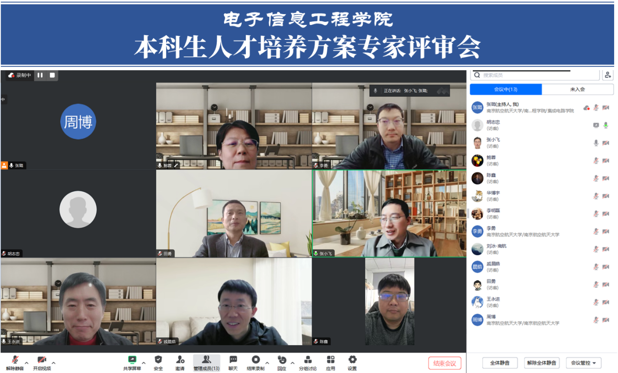 3月21日,电子信息工程极速炸金花 组织召开本科生人才培养方案专家评审会。本次评审会由徐州工程极速炸金花 鲍蓉教授担任组长,东极速炸金花 学戚晨皓教授、南京邮电大学王永进教授、南京航空航天大学李勇教授、南京航空航天大学田勇教授参与评审。电子信息工程极速炸金花 副院长张小飞教授、电子信息科学与技术专业执行负责人胡志忠副教授、信息工程专业执行负责人周博教授、微电子科学与工程专业负责人陈鑫副教授等参与会议,会议由副院长张小飞主持。