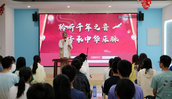 为深入学习贯彻习近平文化思想,弘扬中华优秀传统文化,2024年5月12日由天目湖校区团工委、电子信息工程集成电路极速炸金花 承办的“聆听千年之音,传承中华乐脉”素养公开课在天目湖校区“一站式”社区顺利举行。本次素养公开课邀请国家级代表性传承人、中国民族管弦乐学会古琴专业委员会理事桂世民老师主讲,吸引了校区百余名学生参与讲座。