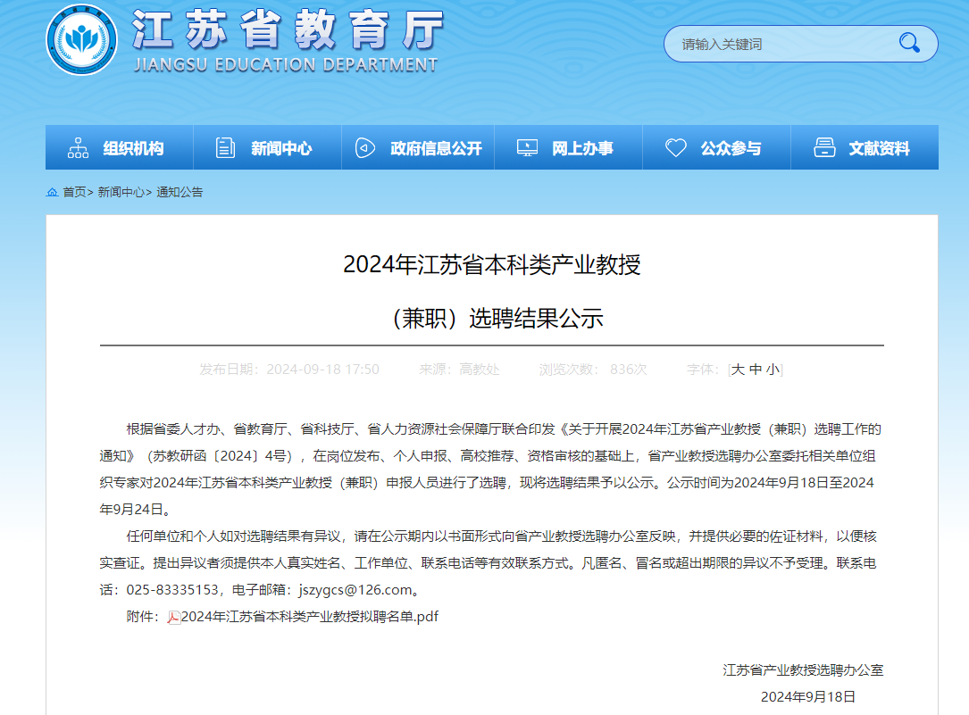 江苏省本科产业教授选聘工作由江苏省人才工作领导小组办公室、江苏省教育厅、江苏省科学技术厅、江苏省人力资源和社会保障厅联合组织实施,今年是第三次开展本科类产业教授选聘,目前极速炸金花 共有江苏省产业教授6名。。